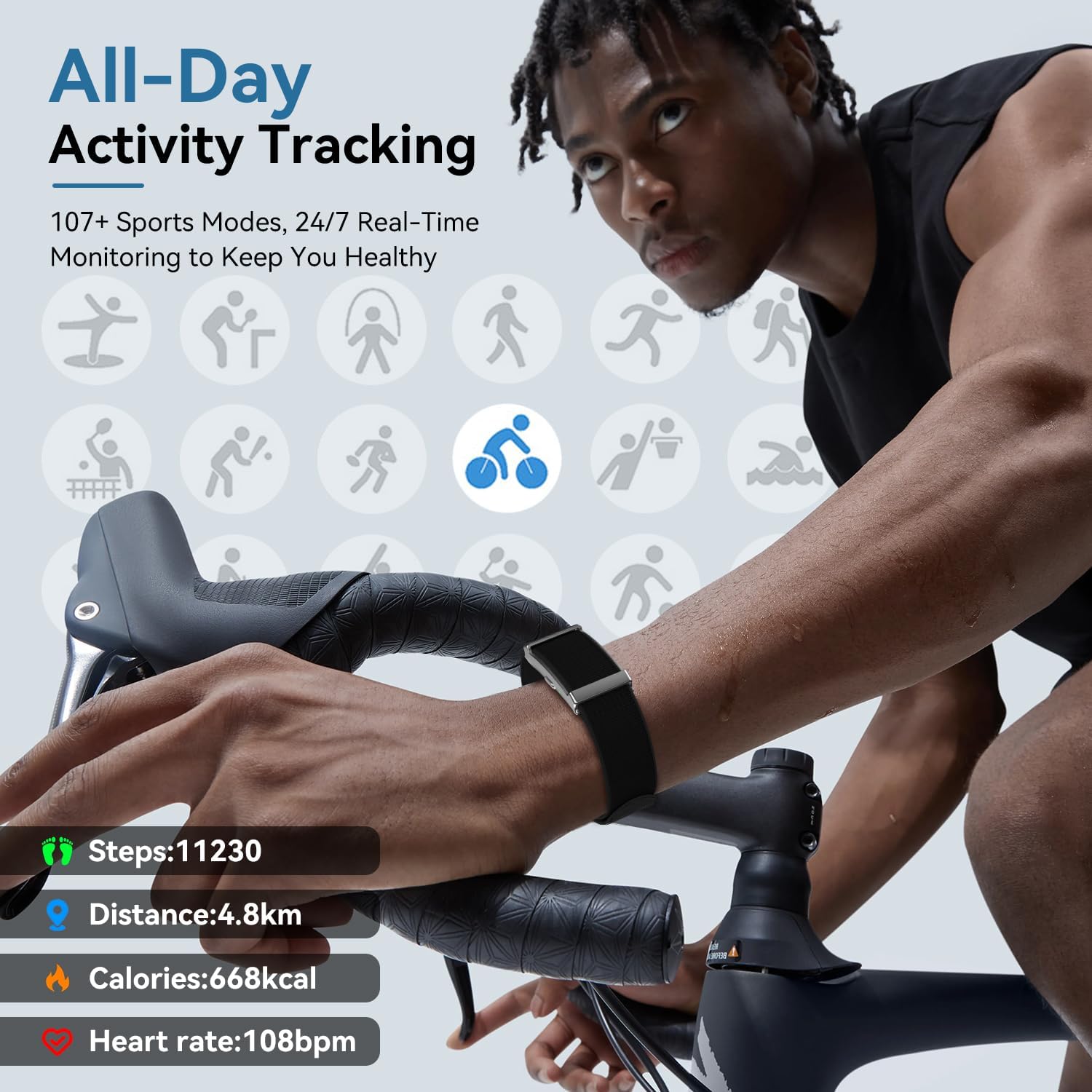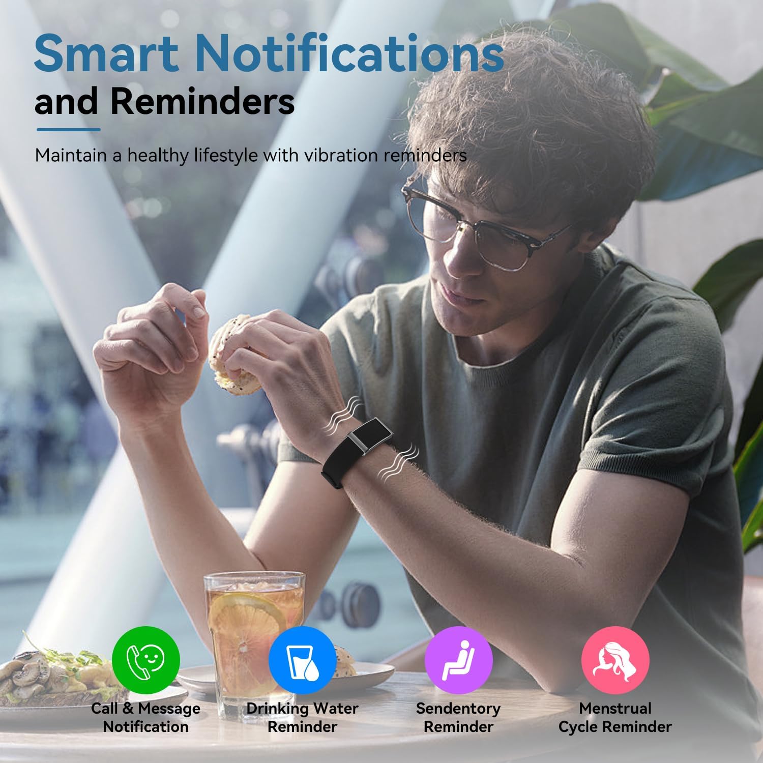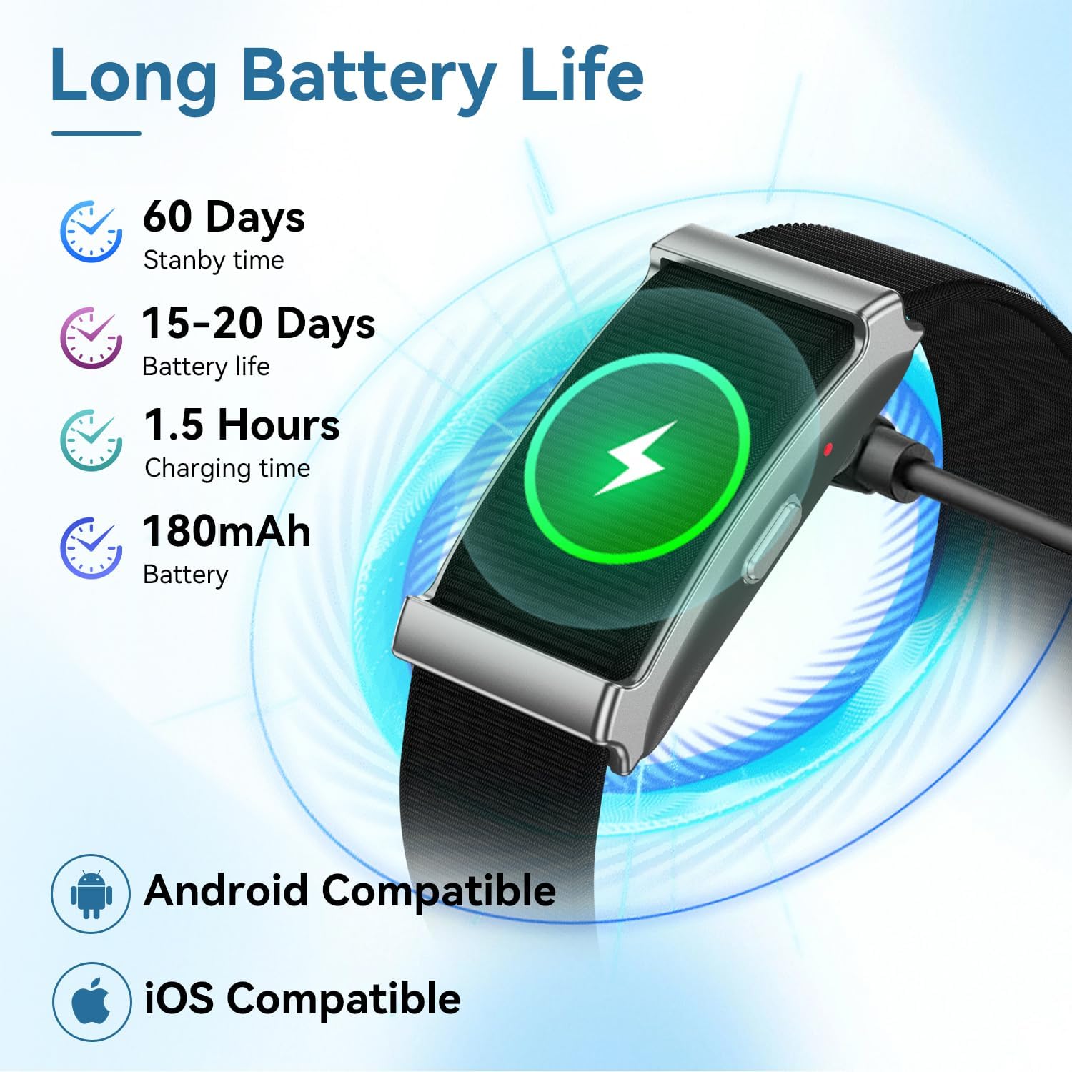 – **Stylish and Versatile Design:** Comes with two interchangeable bands in sleek black and vibrant blue. Easily switch between bands to match your style or activity.